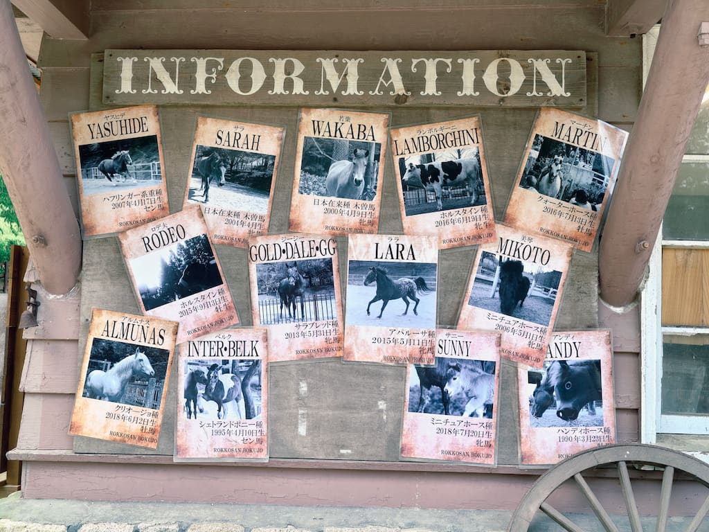 ここで暮らしている馬たちの指名手配書。白黒画像なのが雰囲気ある。
