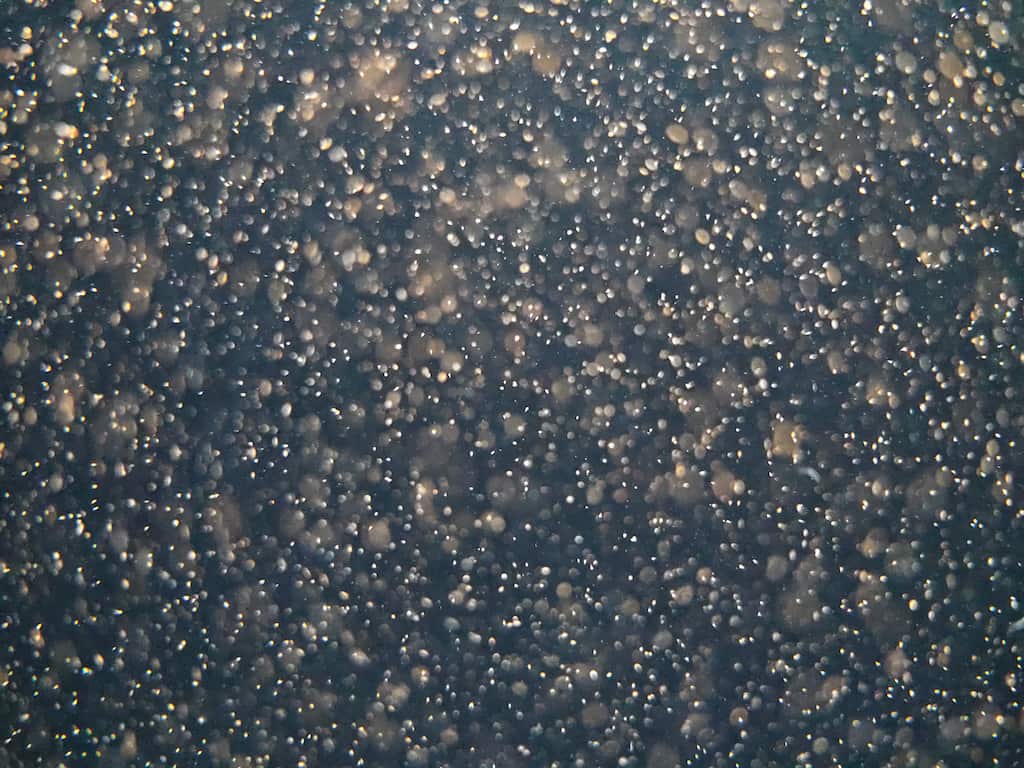 スマートフォンで撮影した、クラゲの餌をぼかした写真