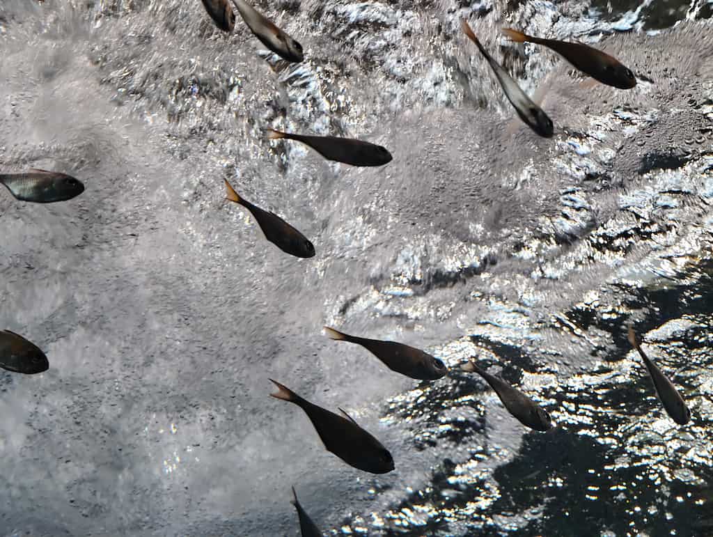 スマートフォンで撮影した、魚を下から逆行気味に撮影した写真